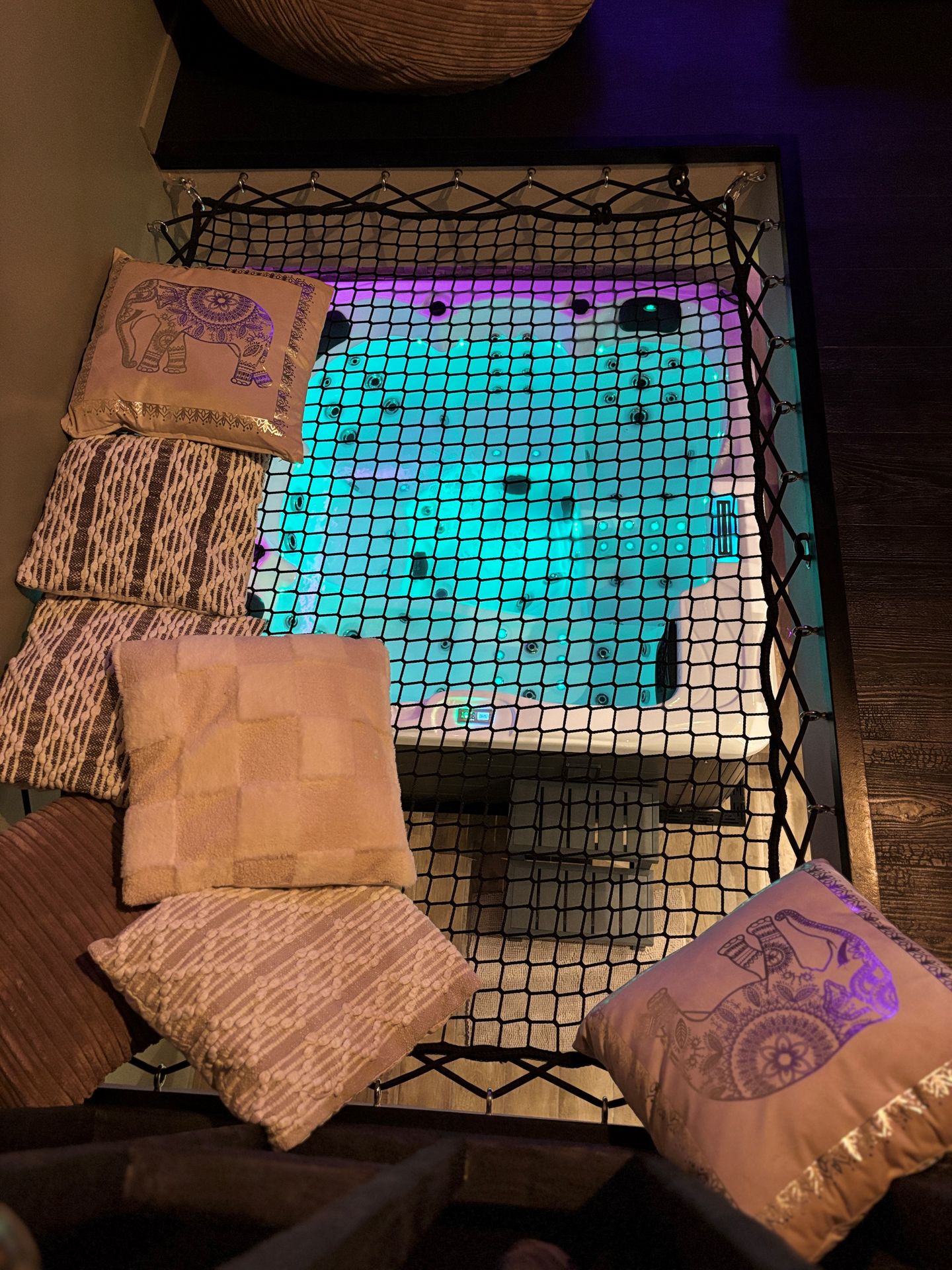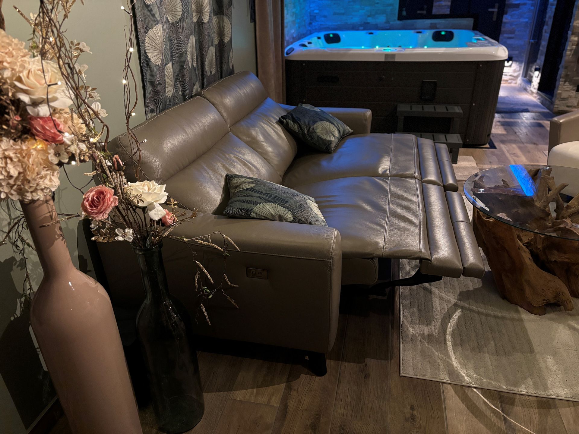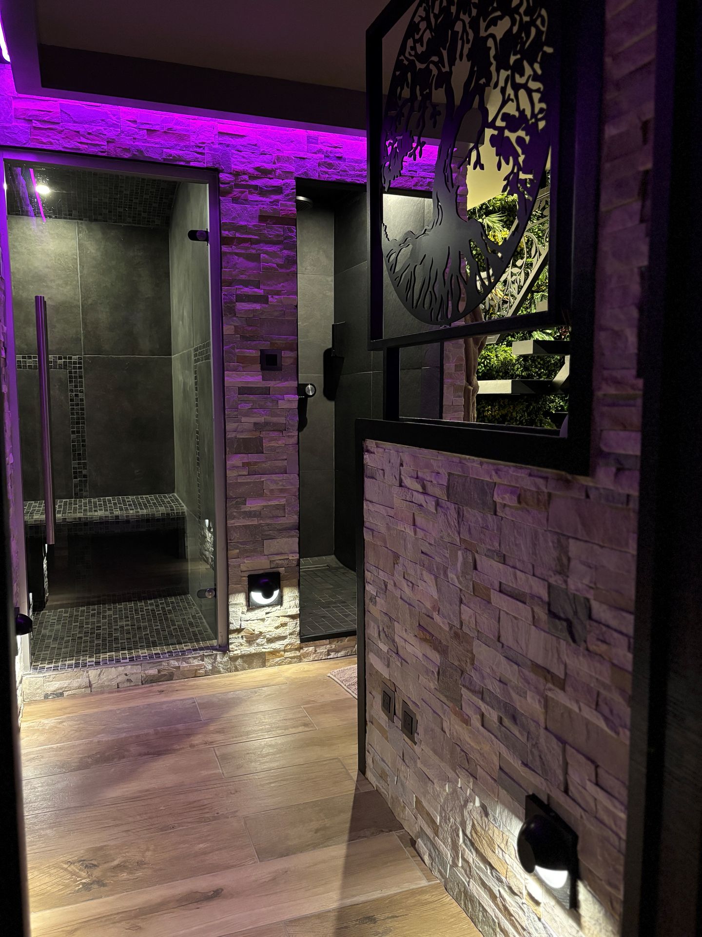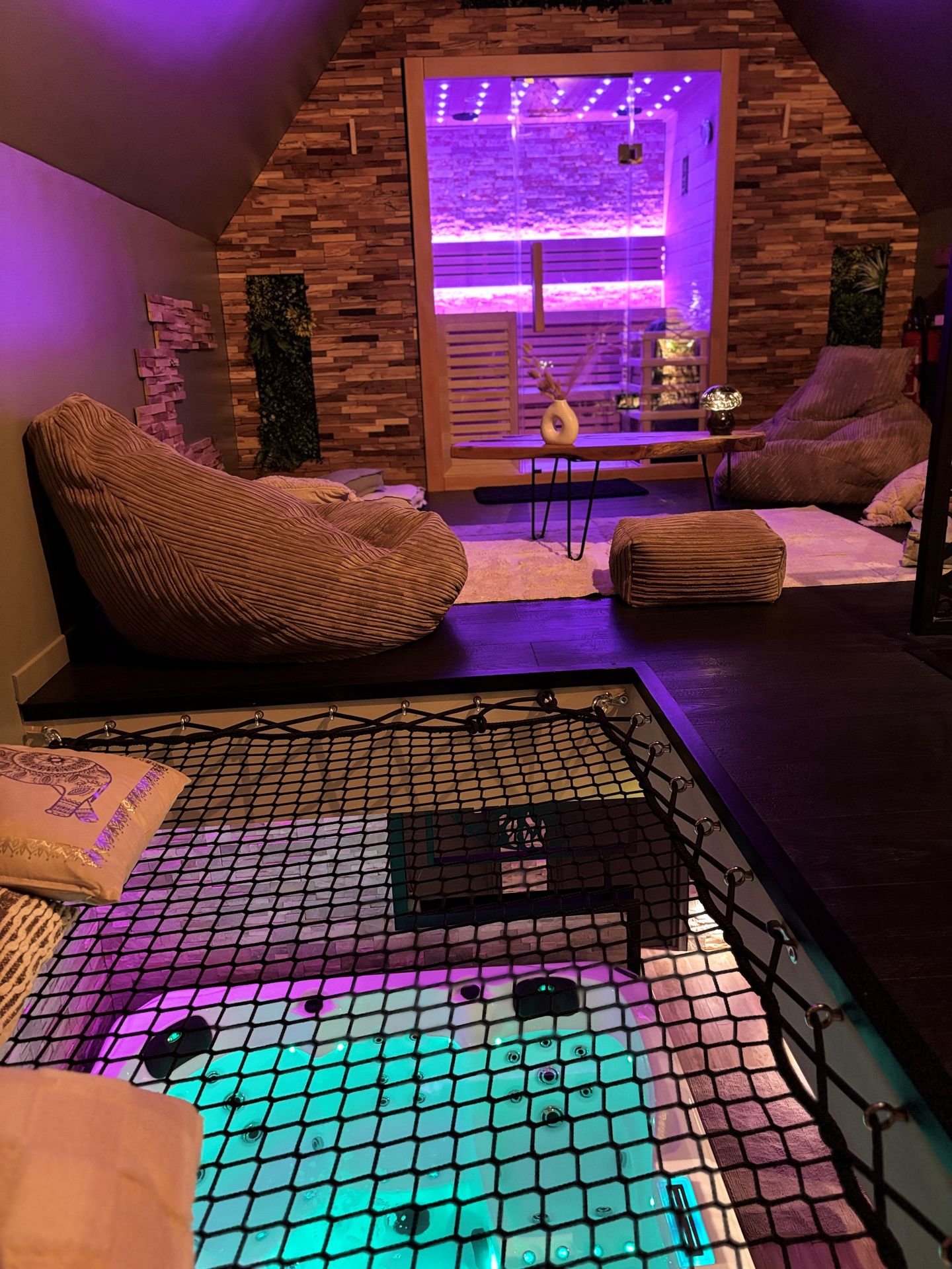 Dans ses 70 m² d’intérieur soigneusement agencés, chaque espace a été imaginé pour éveiller les sens et inviter au lâcher-prise : jacuzzi haut de gamme, hammam enveloppant, sauna apaisant et salon intimiste.