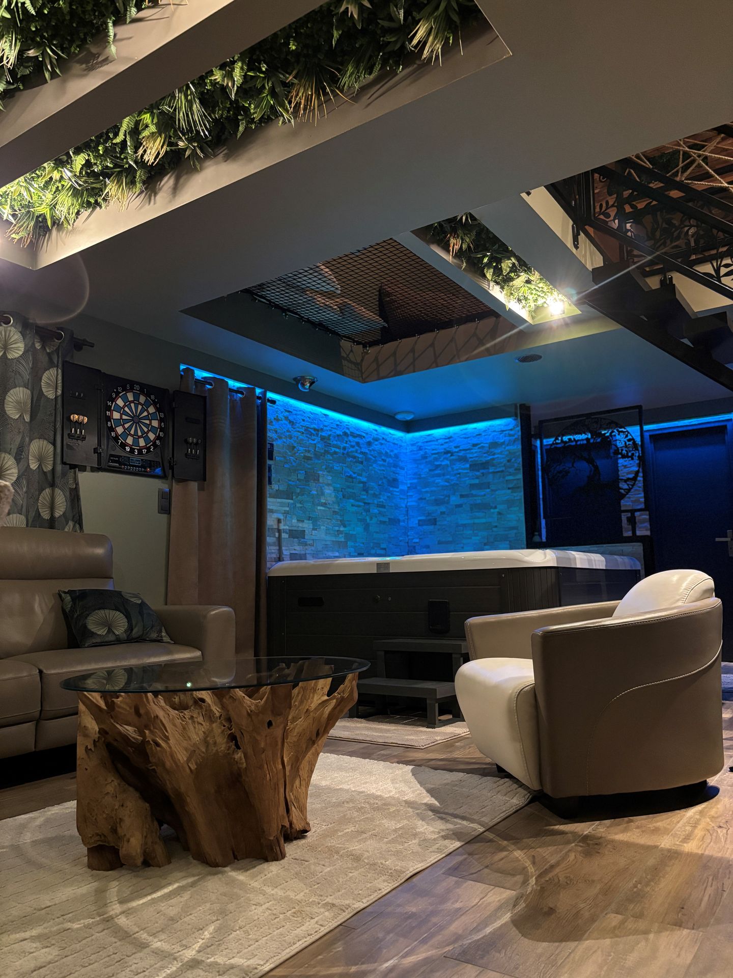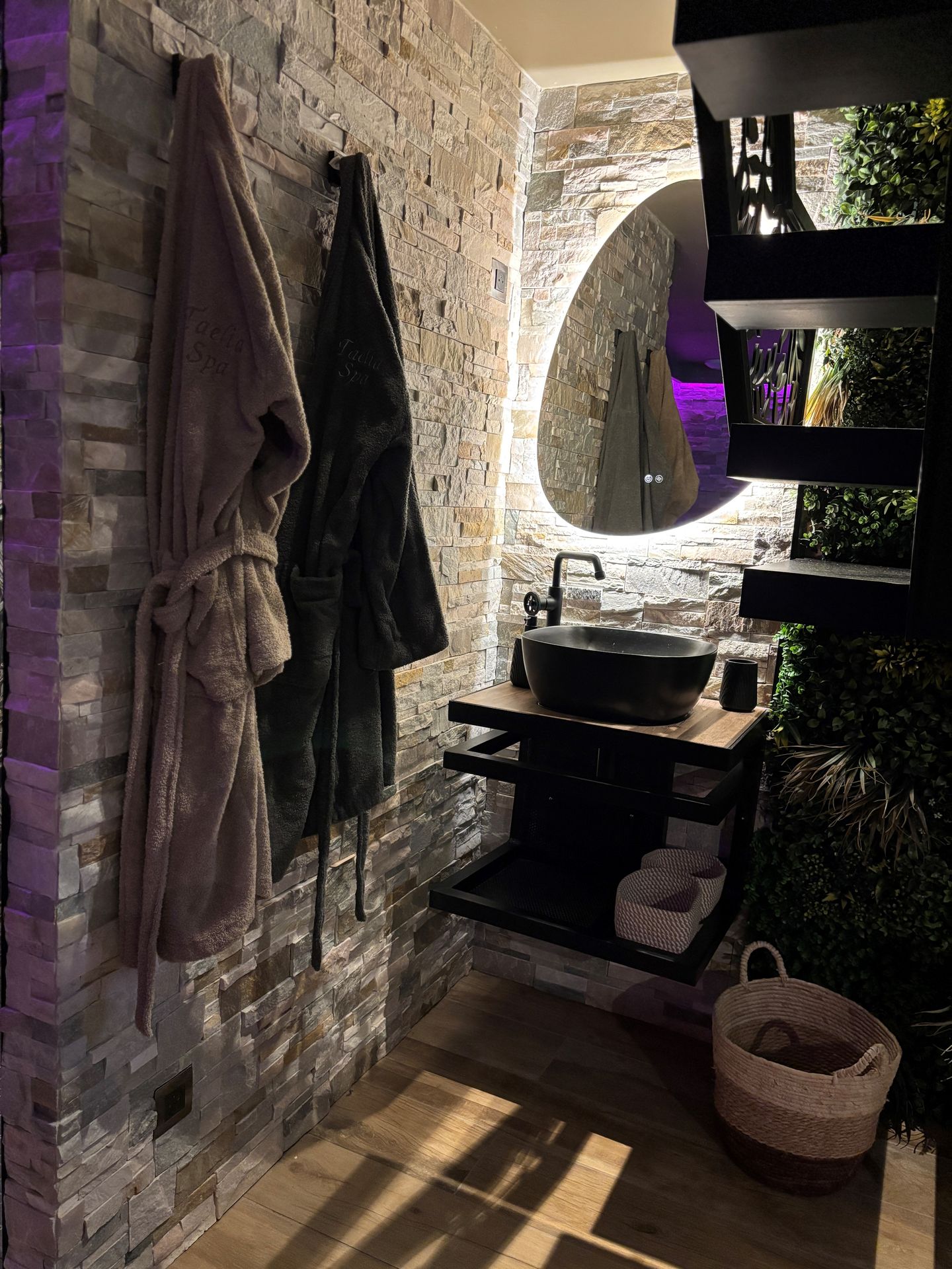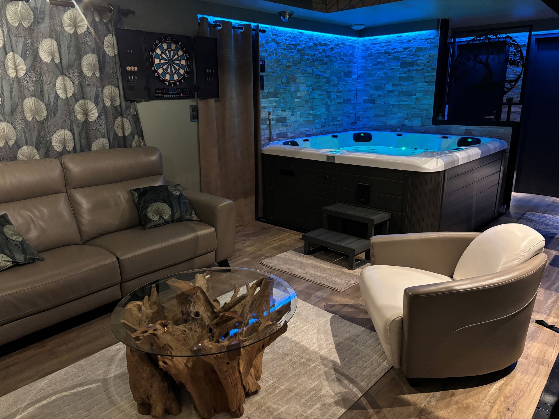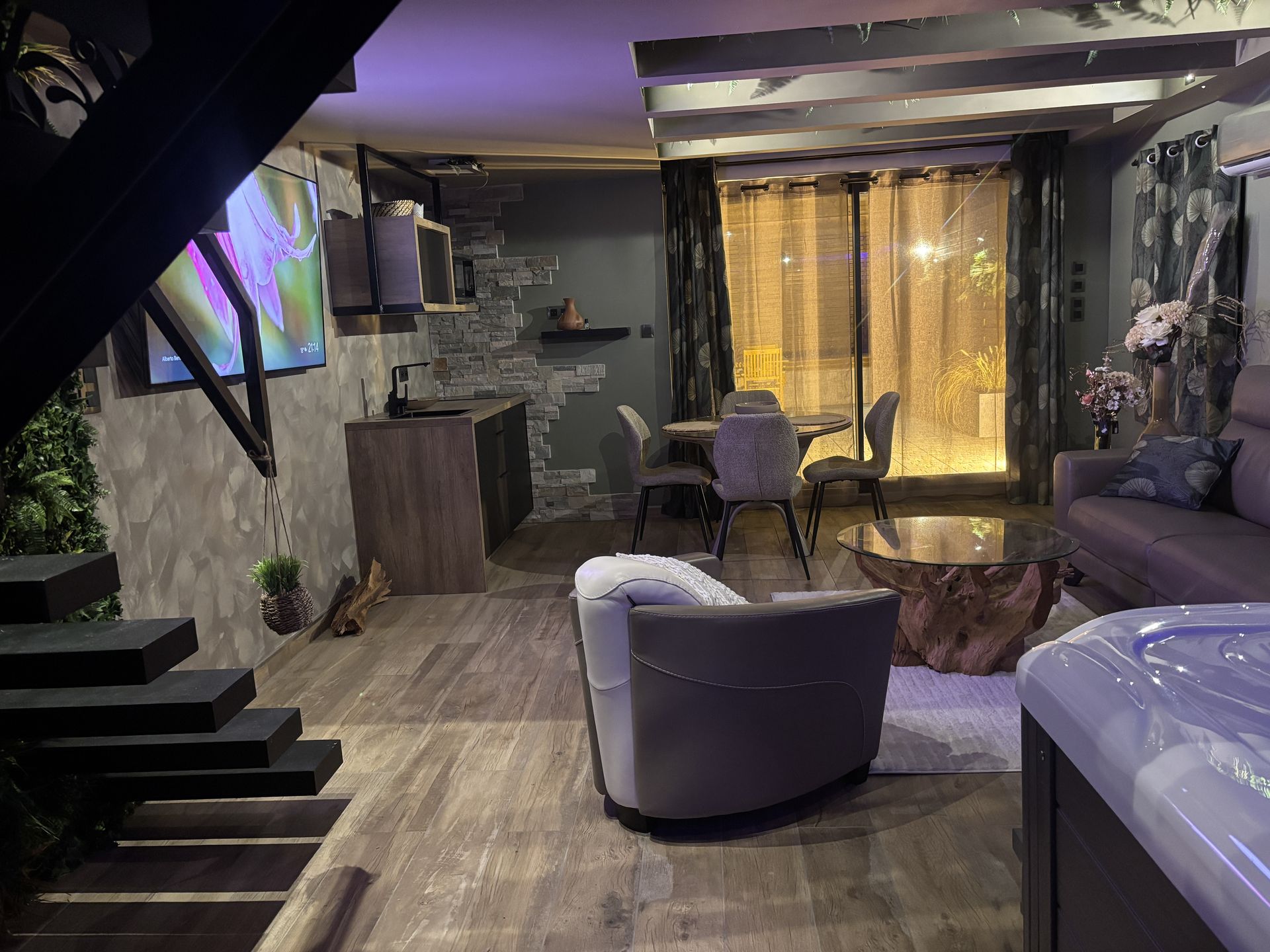 Dans ses 70 m² d’intérieur soigneusement agencés, chaque espace a été imaginé pour éveiller les sens et inviter au lâcher-prise : jacuzzi haut de gamme, hammam enveloppant, sauna apaisant et salon intimiste.